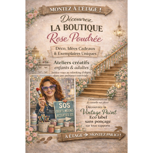 La Boutique/Atelier Rose Poudrée vous fera voyager dans différents univers ! Idées cadeaux, de naissance, de mariage, d’anniversaire pour tous les budgets. Du verre, du bois, de la porcelaine, des rubans, de la dentelle, du satin, des créations artisanales Made in Alsace et également du sur-mesure. La Boutique est également distributrice de la peinture Eco Label (sans ponçage) Vintage Paint, peinture, Cire, Moules, Transfert. Des ateliers sont proposés pour faire revivre vos objets de famille oubliés dans la cave ou au grenier ! Sa peinture Eco Label sa pâte de structure ultra légère, ces moules, ces cires vont vous permettre de décorer sur n'importe quels supports, rendre ces objets uniques puisque c'est vous qui allez le faire, en compagnie de Lydia.