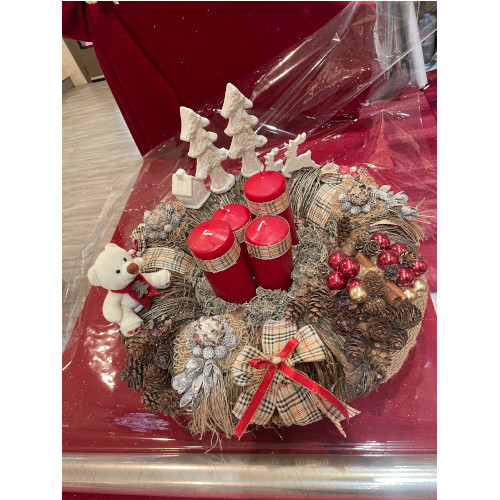Coeurs base en bois, paniers, sacs, écharpes au crochet ou tricot, couronnes de l'Avent, couronnes de portes pour Noël, Pâques, et toutes les occasions, décorations florales sur supports, etc.